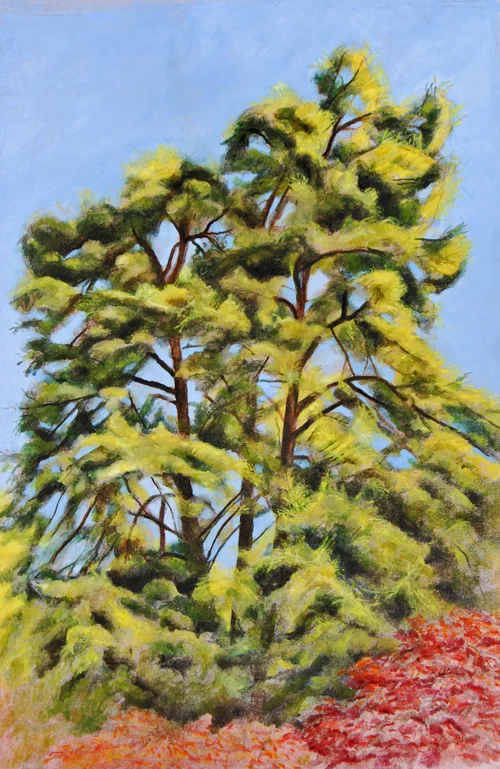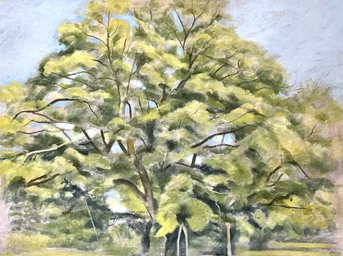 These studies of trees, in watercolour, gouache and acrylic on paper, have been painted on location in the parks of Roath and Penylan Cardiff. I explore the changing configurations of colour and surface seen in individual trees, working from close observation, and a gradual, cumulative depiction. I choose very particular states of morning or evening light. I am fascinated by the ways in which light and shadow can spread across a surface, dissolving, concealing, revealing or emphasizing its features.
