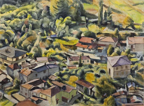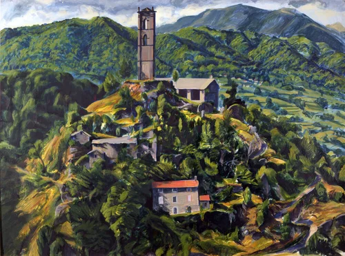 I began painting landscapes in Italy over 40 years ago, and I try to explore the encounter between the energies of space, growth and light, the changing configurations of colour and surface seen in landscape, working through close, prolonged and searching observation, and a gradual, cumulative depiction. These paintings, made in Garfagnana in Tuscany, are in acrylic or watercolour on paper, and were built up slowly, delicately and gradually over a long period of time. Light, (usually direct and changing sunlight) is a dominant element. I choose very particular states of light, which recur at certain times of the day, and I am fascinated by the ways in which light and shadow spread across a surface, dissolving, concealing, revealing or emphasizing its features.